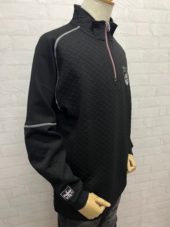 シックなブラックに個性が光るデザイン。立体的な素材と袖の切り替えがお洒落です。